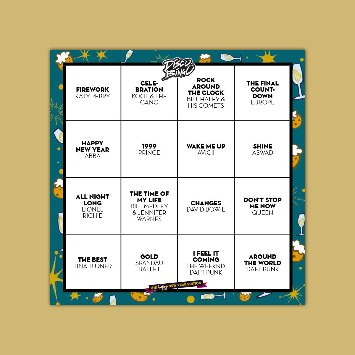 Oudejaarsavond is de uitgelezen avond voor een potje Disco Bingo. Dus trek de champagne maar open en gooi die hits erin. Prop nog snel een paar oliebollen erin. Alle liedjes die iets met Oud & Nieuw te maken hebben zitten erin. Uiteraard kan je dit ook op andere avonden spelen dan Oudejaarsavond. Nieuwjaarsdag bijvoorbeeld.