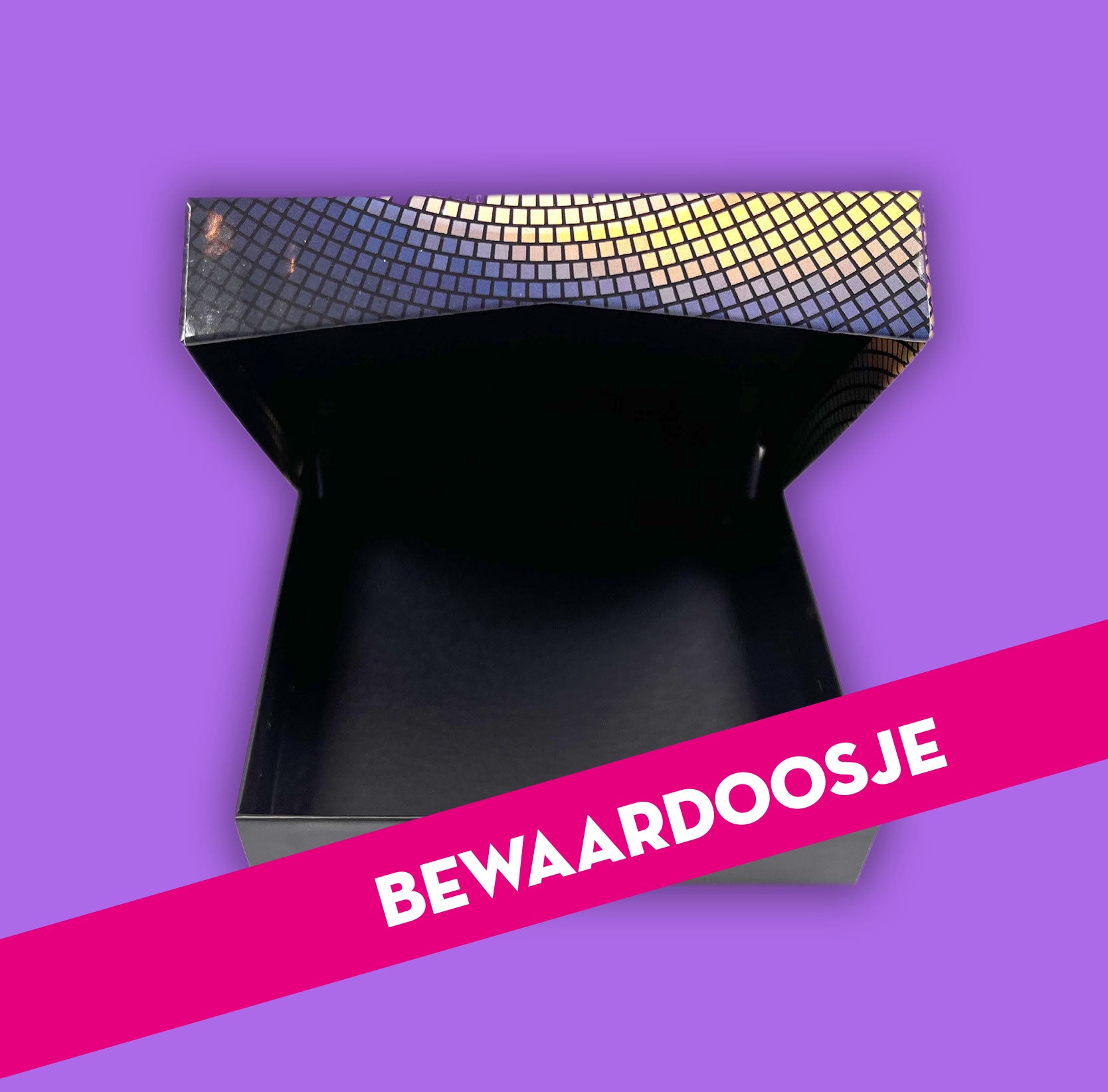 Die offizielle Disco Bingo Aufbewahrungsbox im bekannten Design. Aus stabilem Karton. Bewahren Sie von nun an alle Ihre Extra-Editionen sicher und organisiert auf. Auch wenn Sie noch Karten übrig haben, legen Sie diese in diese Box. Verlieren Sie nie wieder Karten!